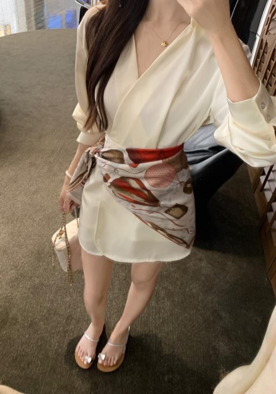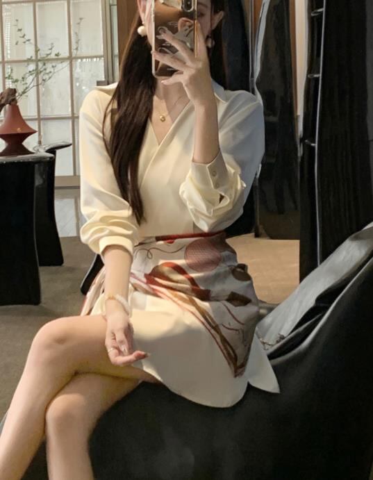 2024春秋新作 女 レディース ハイウエスト 長袖 ミニ ワンピース ドレス 台型スカート セット