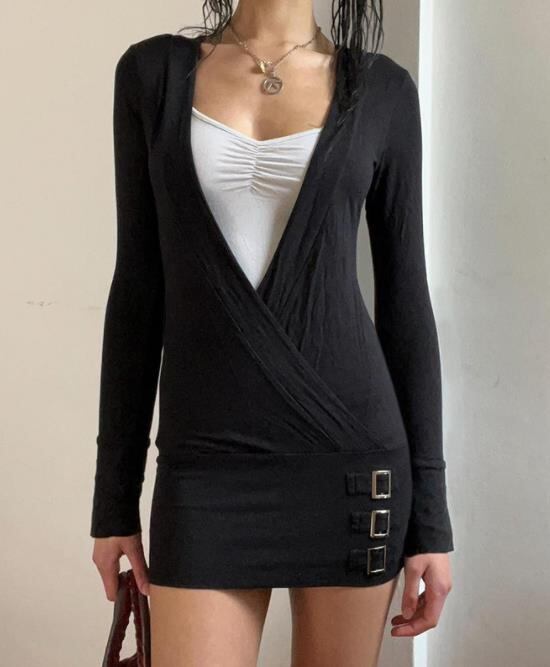 2024春秋新作 女 レディース ハイウエスト 長袖 ニット ミニ ワンピース ドレス タイトスカート