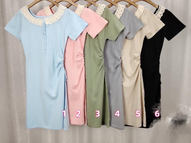 2024春夏新作 女 レディース 半袖 ハイウエスト ミニ ワンピース ドレス 台型スカート