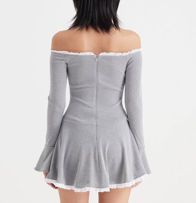 2024春秋新作 女 レディース 長袖 無地 ハイウエスト ミニ ワンピース ドレス 台型スカート