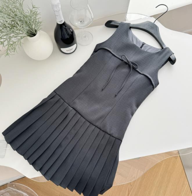 2024春夏新作 女 レディース ハイウエスト 袖なし ミニ ワンピース ドレス プリーツスカート