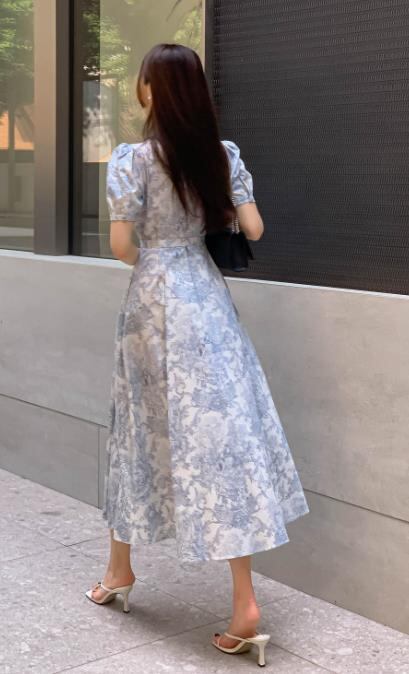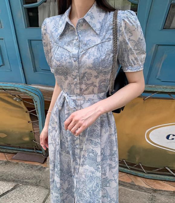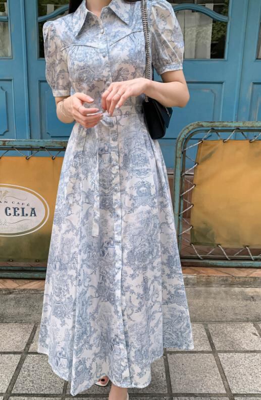 2024春夏新作 女 レディース ハイウエスト 半袖 ロング ワンピース 台型スカート