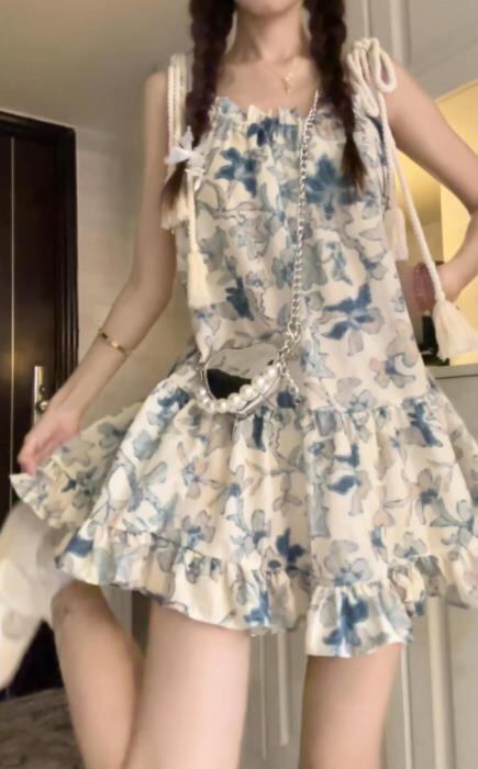 2024春夏新作 女 レディース ハイウエスト 袖なし 吊りスカート ミニ ワンピース ドレス 台型スカート