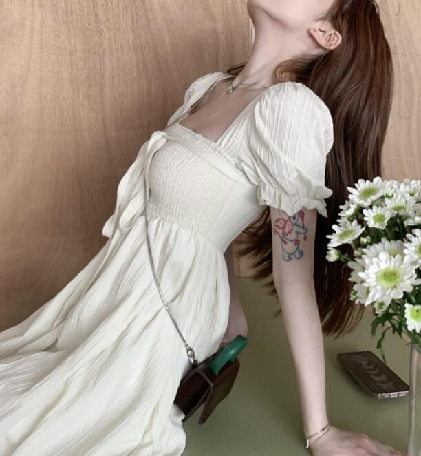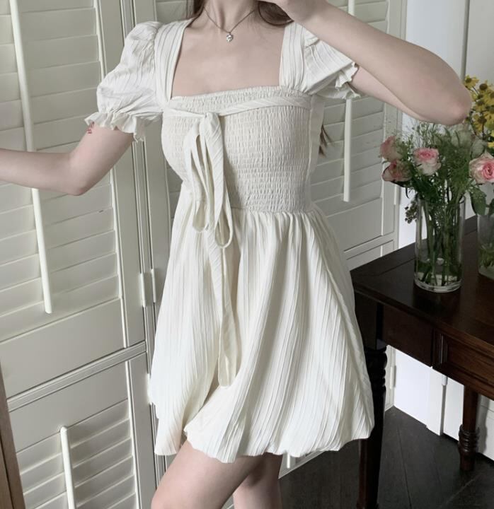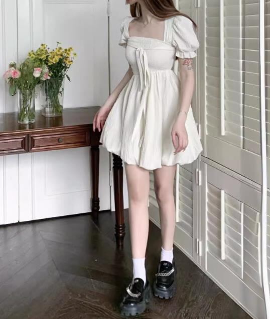 2024春夏新作 女 レディース ハイウエスト 半袖 無地 ミニ ワンピース ドレス 台型スカート