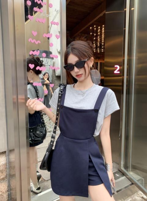 春夏新作 女 レディース 袖なし 吊りスカート ミニ ワンピース ドレス 台型スカート セット
