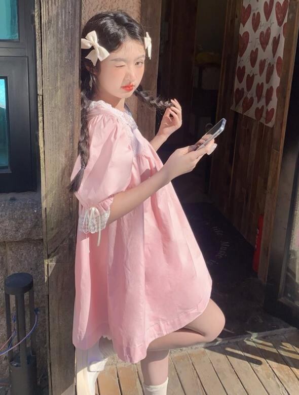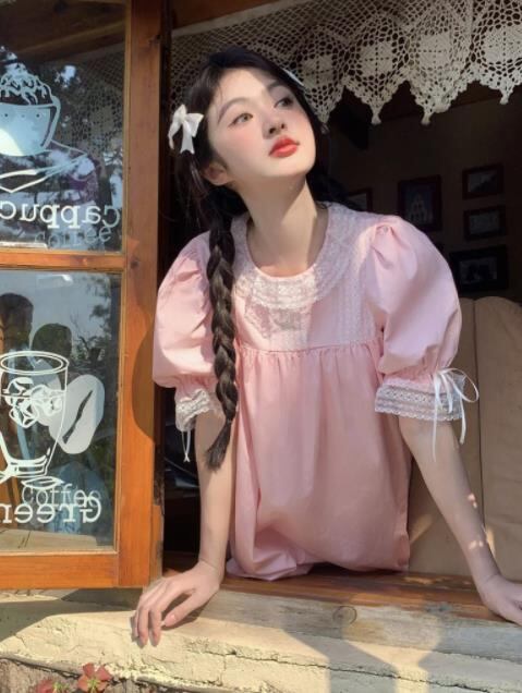 春夏新作 女 レディース ハイウエスト 半袖 レース ミニ ワンピース ドレス 台型スカート