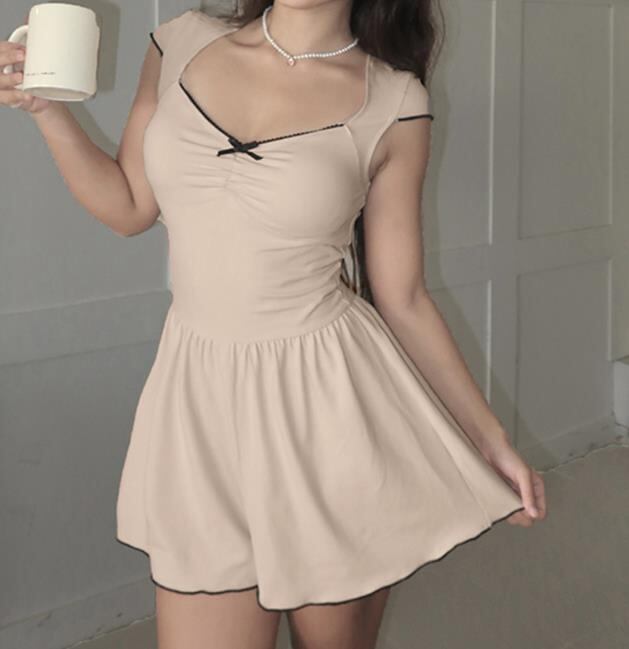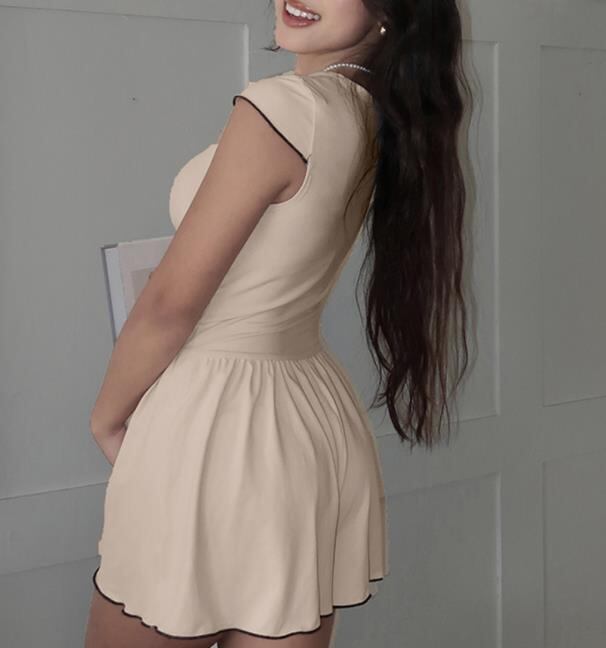 春夏新作 女 レディース ハイウエスト 袖なし ミニ ワンピース ドレス 台型スカート ガウチョパンツ