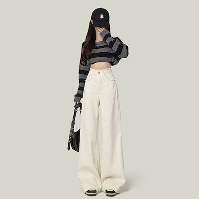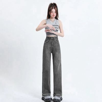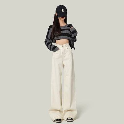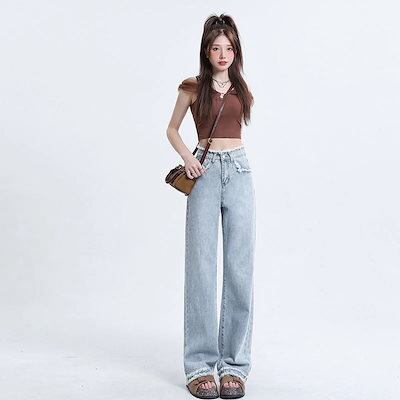 春秋新作 ガウチョパンツ ワイドパンツ ゆとりがある 着痩せ 韓国ファッション やせて見える ハイウエスト バリ ストレートパンツ ワイドパンツ レディース