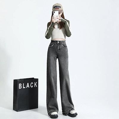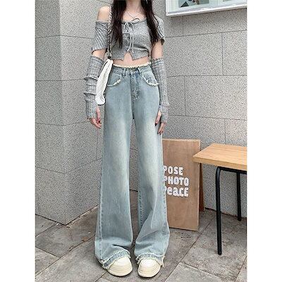 春秋新作 ガウチョパンツ ハイウエスト ライトブルー ワイドパンツ ゆとりがある 着痩せ やせて見える ストレートシリンダ 垂下感 ワイドパンツ レディース
