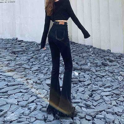 春秋新作 ガウチョパンツ ジーパン ハイウエスト 着痩せ やせて見える 復古 ラッパズボン ワイドパンツ レディース