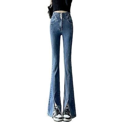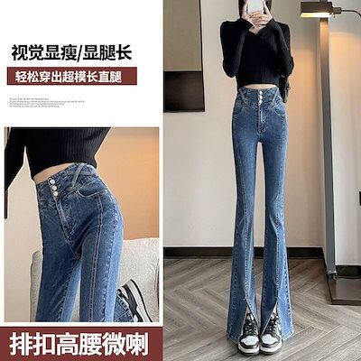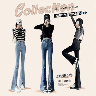 春秋新作 ガウチョパンツ ジーパン フォーク本 ばね力 ハイウエスト 着痩せ やせて見える ラッパズボン ワイドパンツ レディース