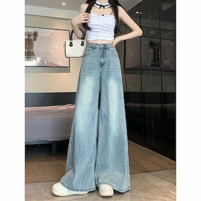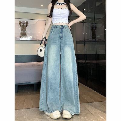 デニムワイドパンツ 秋新作 ワイドパンツ 薄い色 薄い 垂下感 着痩せ ゆとりがある ストレートパンツ 韓国ファッション 百掛け やせて見える