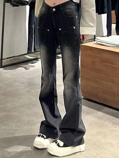 デニムパンツ ストレートジーンズ レディース 春秋 ゆったり スリム 黒 レトロ ワイドパンツ