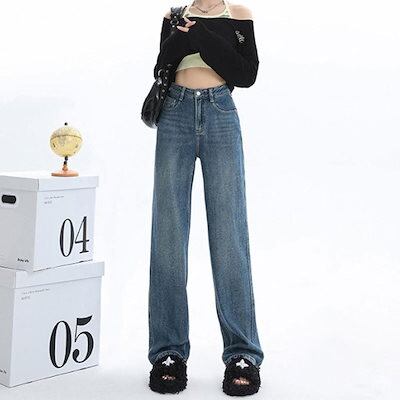 デニムボトムス ニューデザイン ストレートパンツ レディース 脚長効果春秋 ハイウェスト 体型カバー ファッション モップパンツ ワイドパンツ ジョガーパンツ 体型カバー