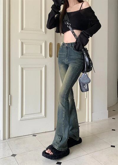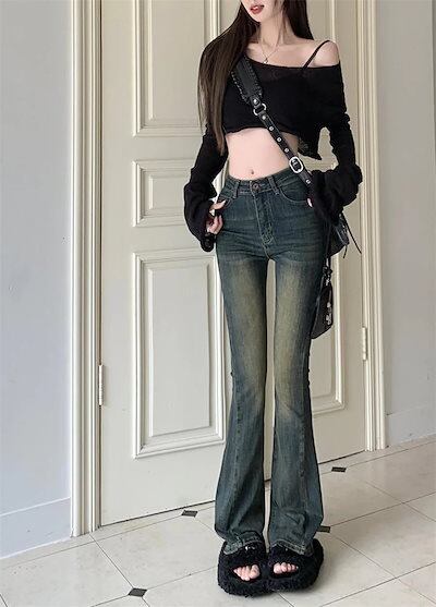 2024春夏 ボトムス パンツ デニム ロングファッションワイドレッグ レディース 脚長効果 レトロズボン韓国 ハイウエスト 足長効果 薄手 おしゃれ お出かけ 細見え
