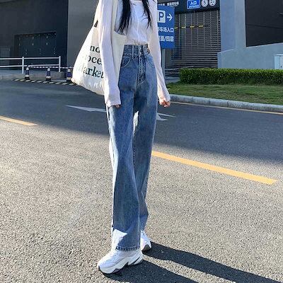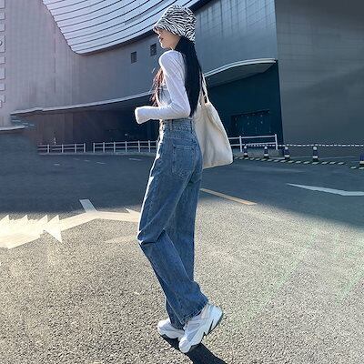ワイドパンツ ハイウエストジーンズレディース2024秋新作ストレートパンツルーズトレーリングワイドパンツ