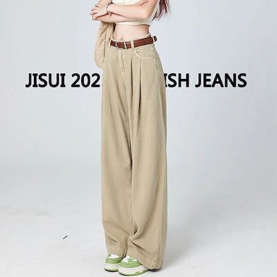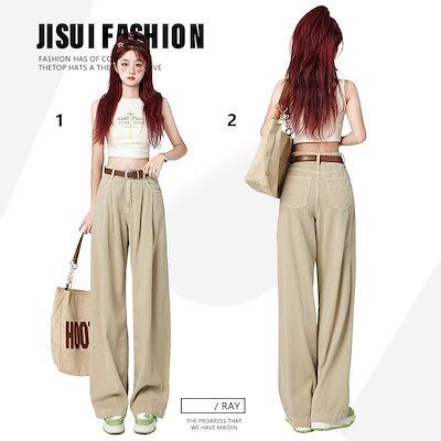 デニムパンツ 韓国ファッション デニムボトムス 秋 ゆったり パンツ レディース ハイウエストロングパンツ 体型カバー 着痩せ デニム ワイドパンツ体型カバー