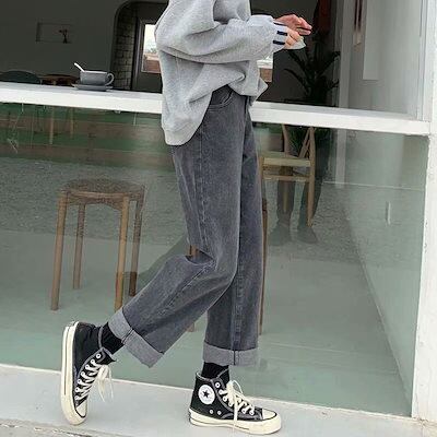人気スラックスパンツ グレージーンズ レディース ストレート 薄手 2024 新作 ワイドパンツ