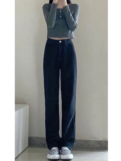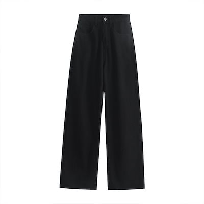 人気スラックスパンツ ブラックストレートジーンズ レディース 2024年秋新作 ドレープワイドレッグ