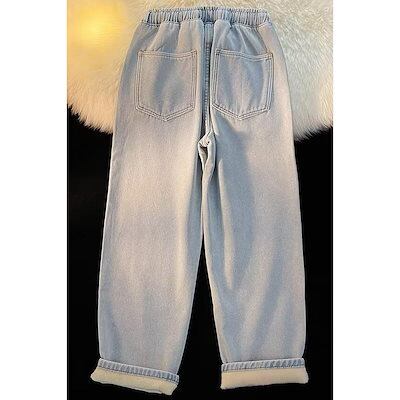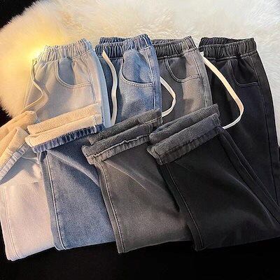 2025年新品の発売ウエストゴム あったか ジーンズ 裏起毛 デニムパンツ 厚手 ジーパン レディース ワイドパンツ 冬 ハイウエスト ストレートパンツ ゆったり 着痩せ