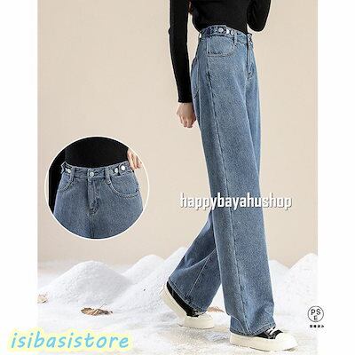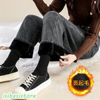 デニムパンツ レディース ワイドパンツ 裏起毛 裏ボア ジーンズ 厚手 ハイウエスト 秋冬 ジーパン 保温 防寒 暖かい ロングパンツ ゆったり 通勤
