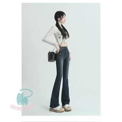 新品(タイムセール)デニム パンツ レディース ボ 美脚 チノパン ラッパ ハイウエスト ワイドパンツ パンツ 体型カバー 春 夏 秋 ジーパン 20代 30代 40代 カジュアル