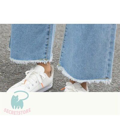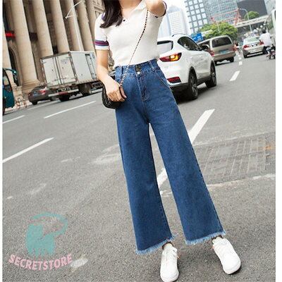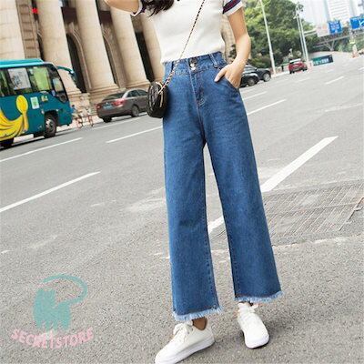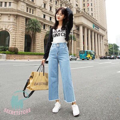新品(タイムセール)ワイドパンツ デニム レディース ジーンズ ズボン ボ 九分丈 ハイウエスト ロング丈 カシュアル 体型カバー ゆったり 美脚 春秋 細身