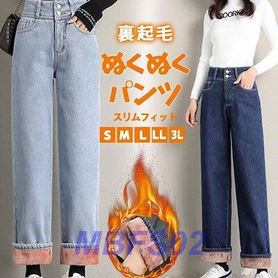 ワイドデニムパンツ レディース 裏ボア 極暖 厚手 暖かい ズボン パンツ 裏起毛パンツ デニムパンツ 暖かい 防風 防寒 あったか 秋と冬おすすめ商品