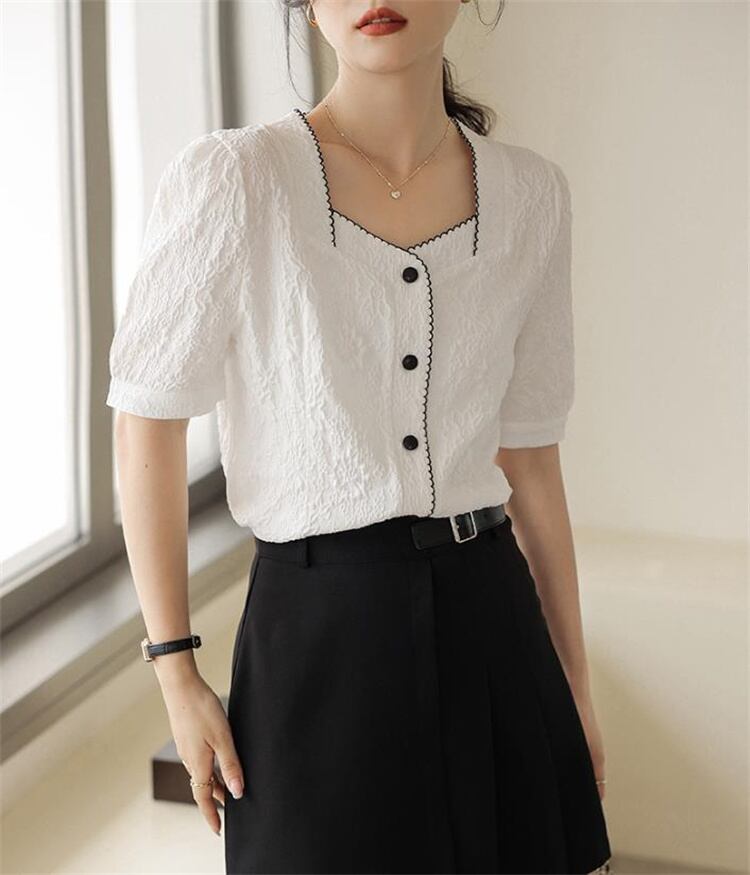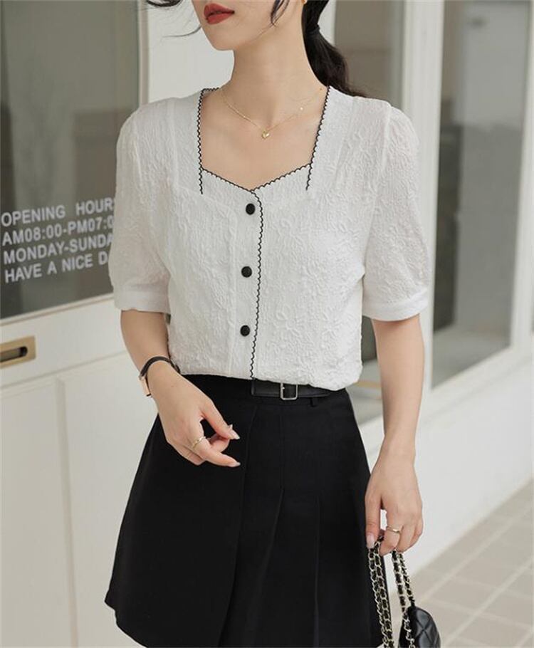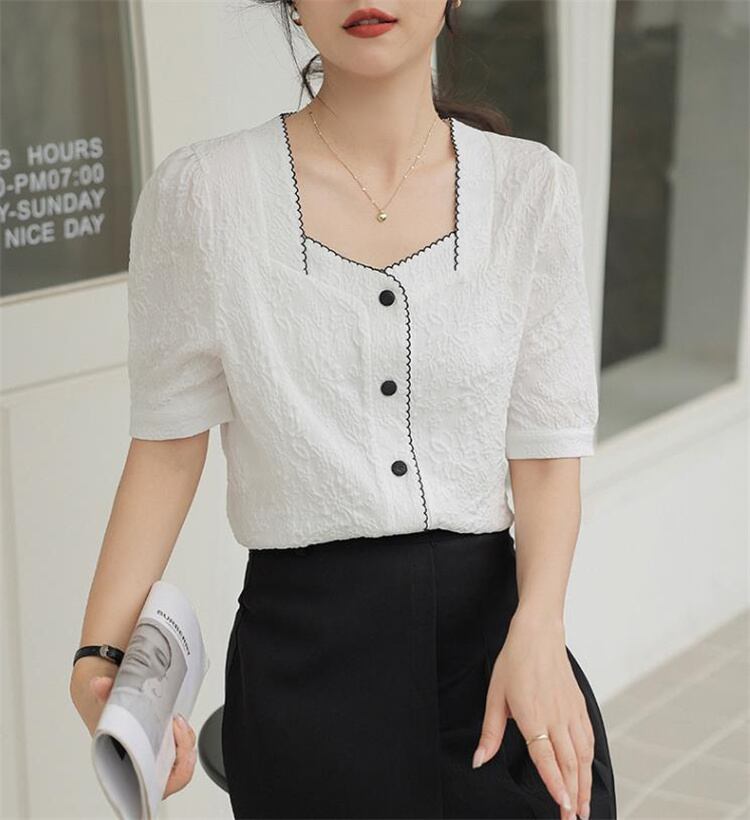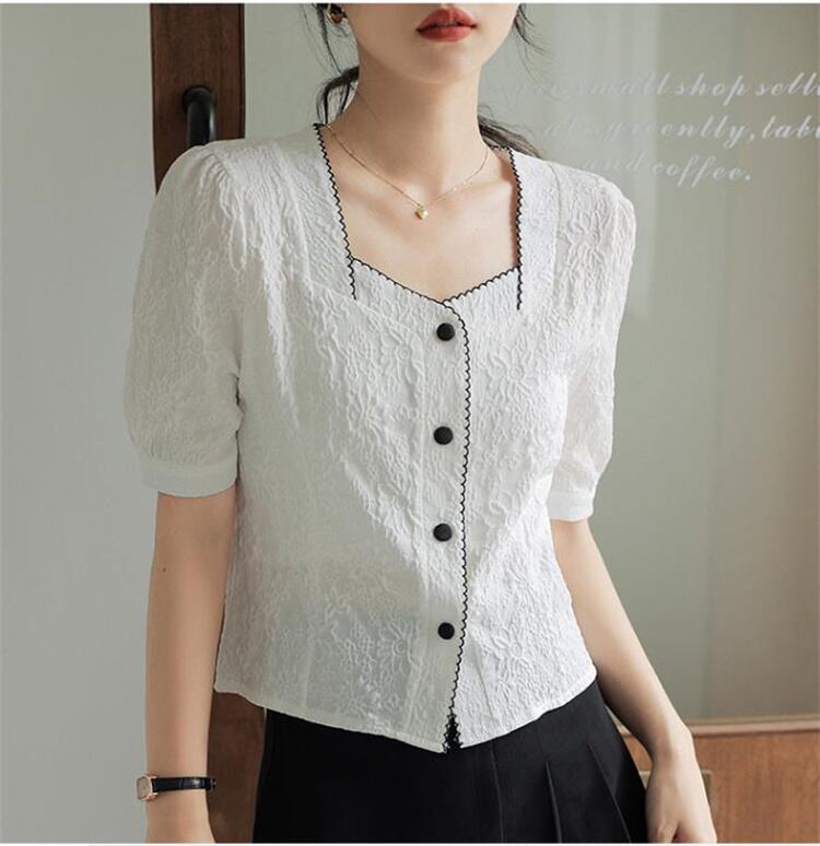 イメージ通りでした ジャカード スクエアネック 半袖シャツ 2023新品 シフォンシャツ カジュアル