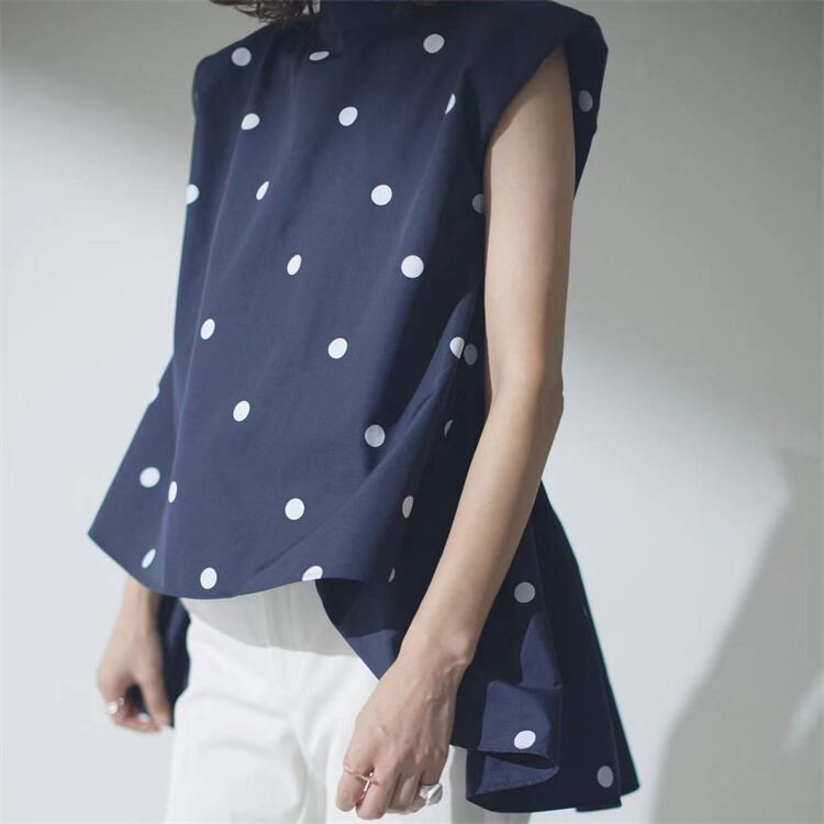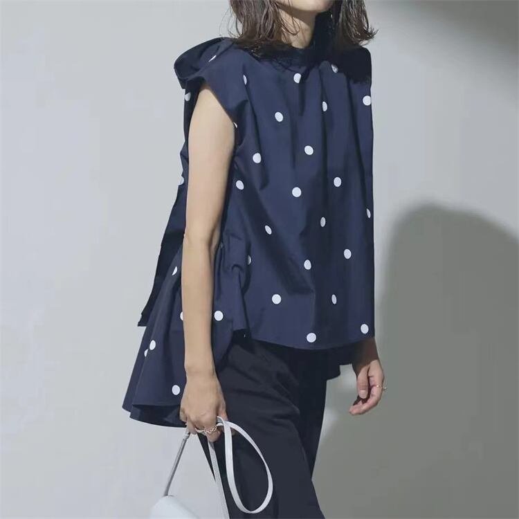 おしゃれの必需品 激安セール ドット 前後不規則 背後蝶ネクタイ テザリング 半袖 シャツ スリム 気質