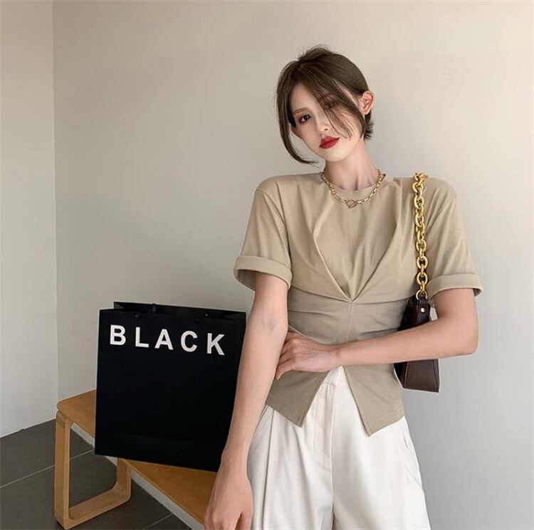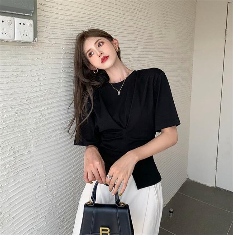 気質の女神は本当に綺麗です イレギュラー デザインセンス 受け取って腰 上着 スプリット 半袖 Tシャツ