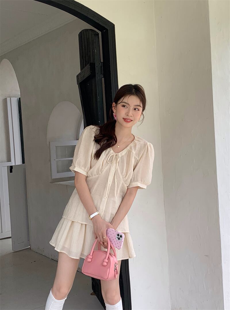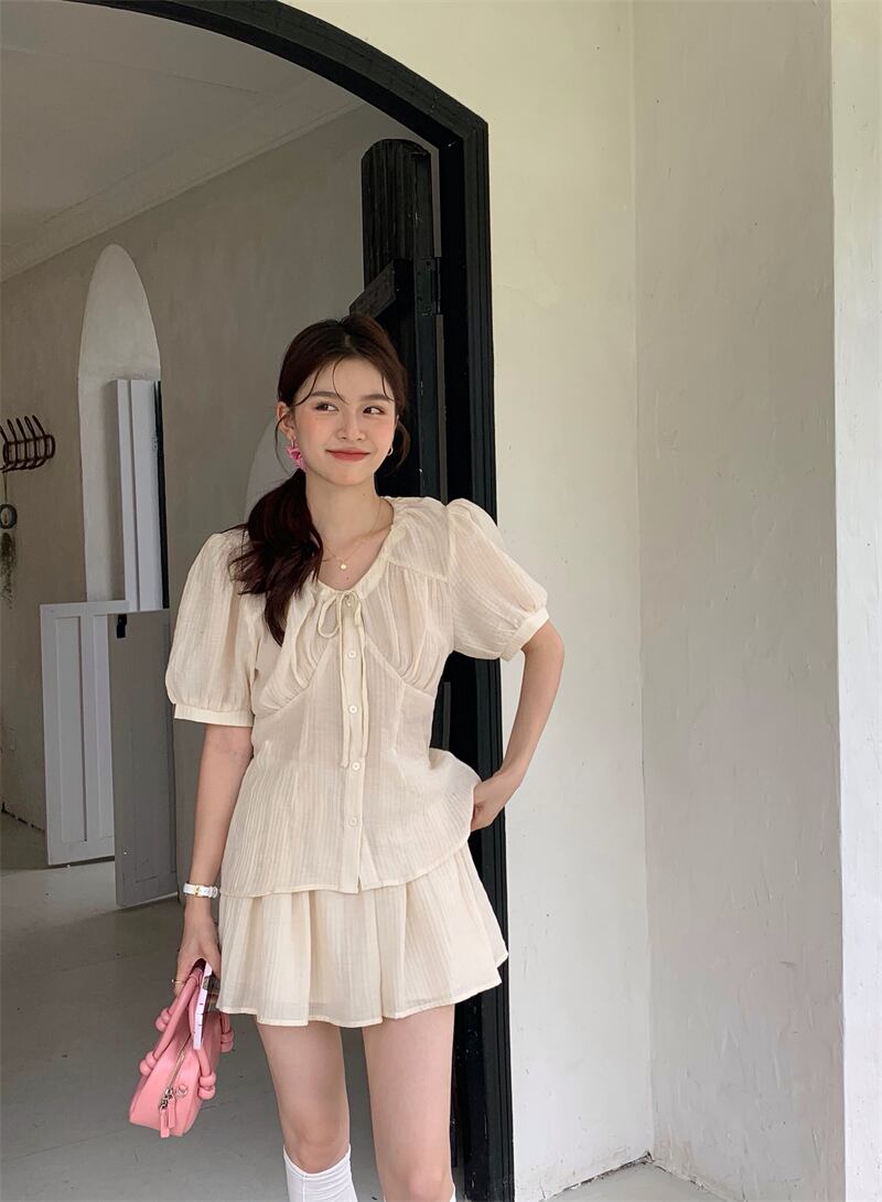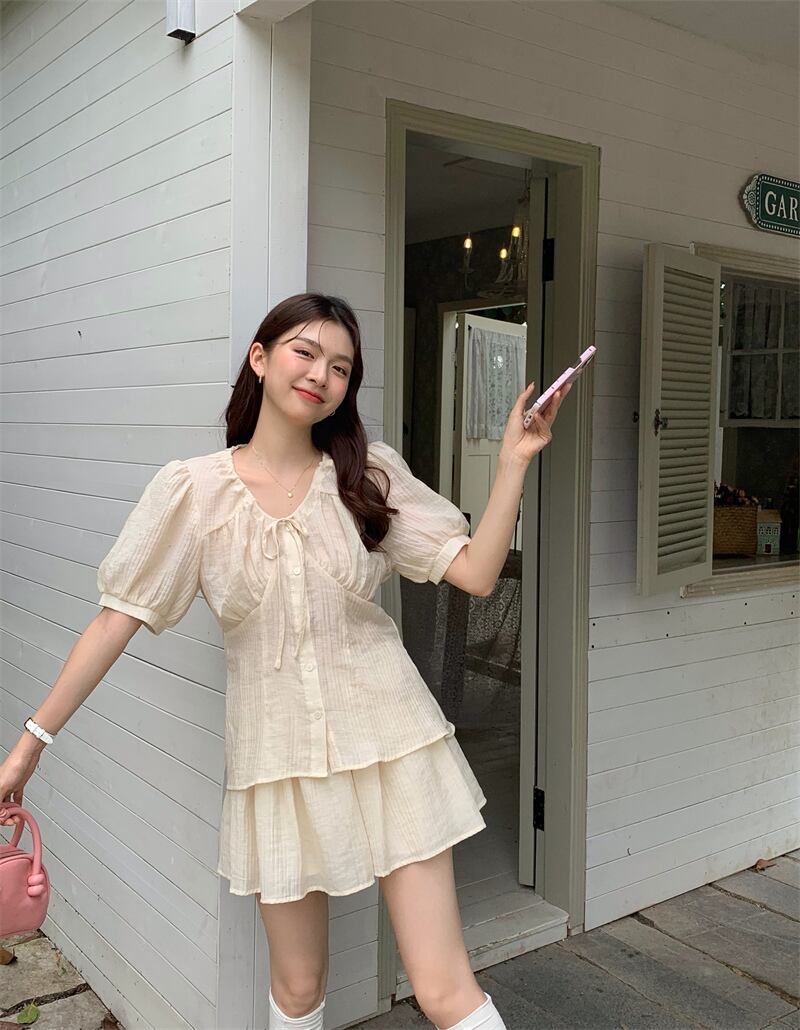 2023夏INS新作★気質 Vネック 半袖ブラウス +ショーパン セット 韓国系 カジュアル系