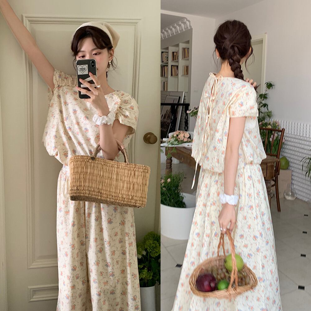 2023夏INS新作★気質 パフスリーブ 優しい 半袖シャツ コート+セミロングスカート セット