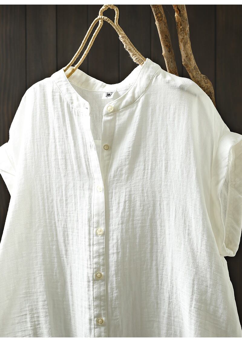 見なきゃ損する 夏 シャツ ゆったりする カフ 半袖 綿麻 上着 詰め襟 文芸 二重綿糸 トレンド 袖なし