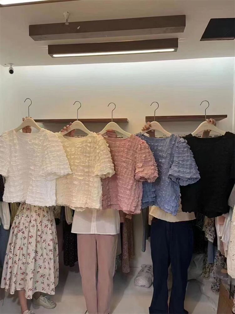 コーデに旬を取り入れる ブラウス 雲 キメ感 パフスリーブ フォールド 半袖 レディース 上着 シャツ