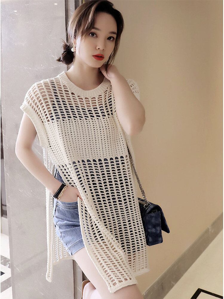この1枚で今年風に 早い者勝ち ニット 半袖 スプリット ゆったりする 大人気 カジュアル ミッドレングス