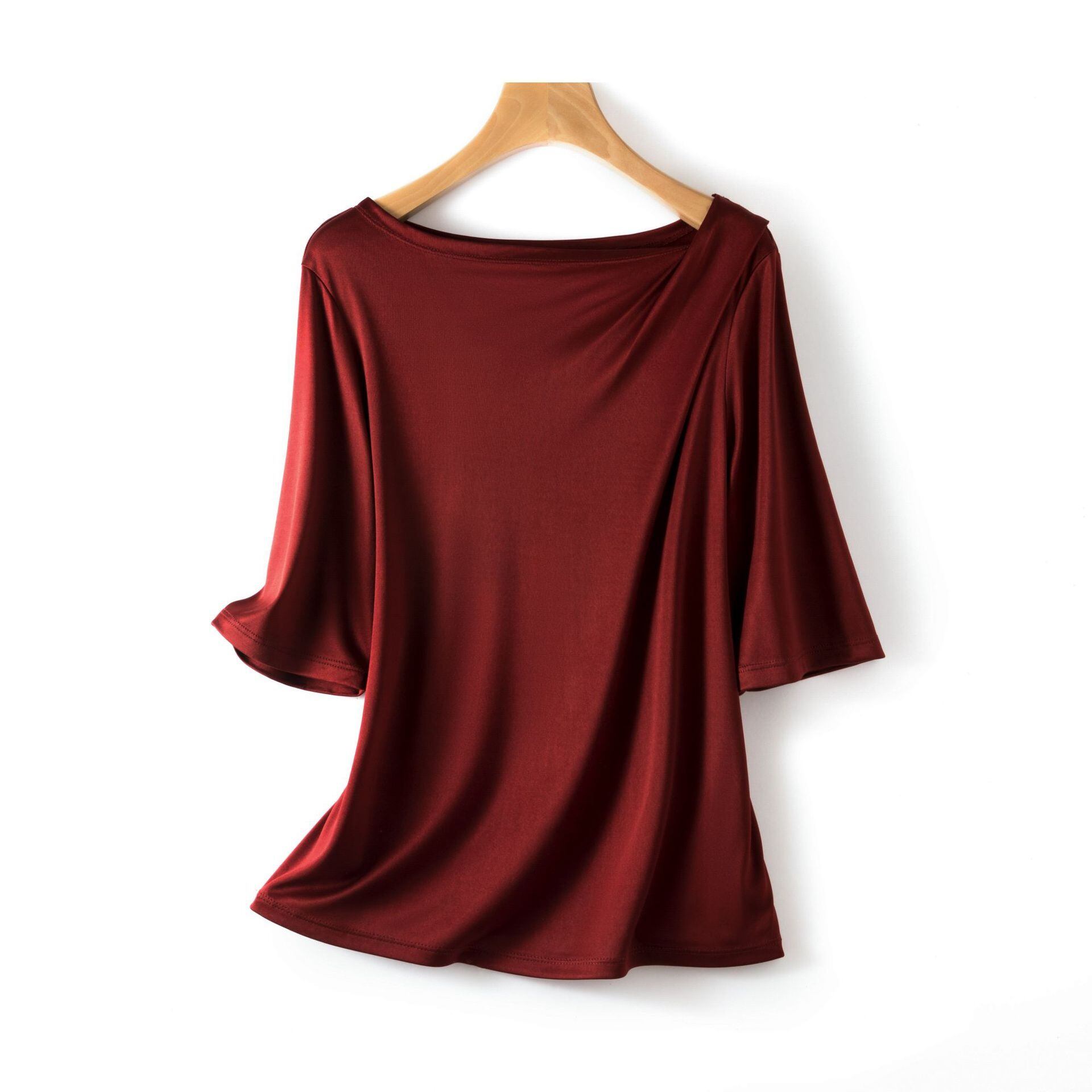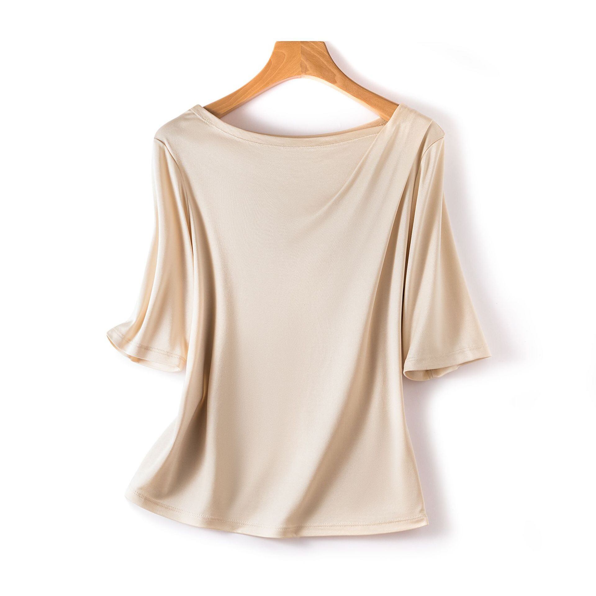 半袖Tシャツ レディース風 無地 清涼感 バトーカラー おしゃれ 夏服