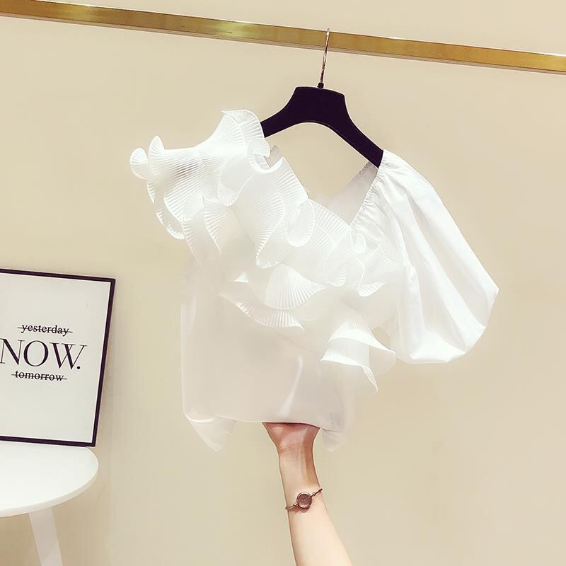 初回送料無料 トップスシャツVネック不規則な半袖アンバランストップスブラウス人気商品