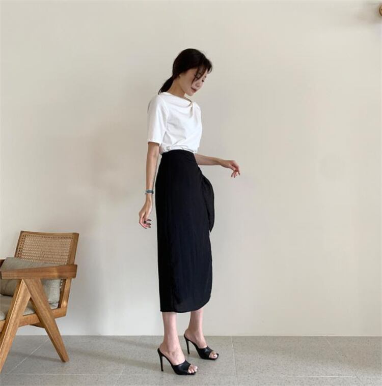 カジュアル 半袖 Tシャツ 上着 気質 イレギュラー ラウンドネック キンク デザインセンス