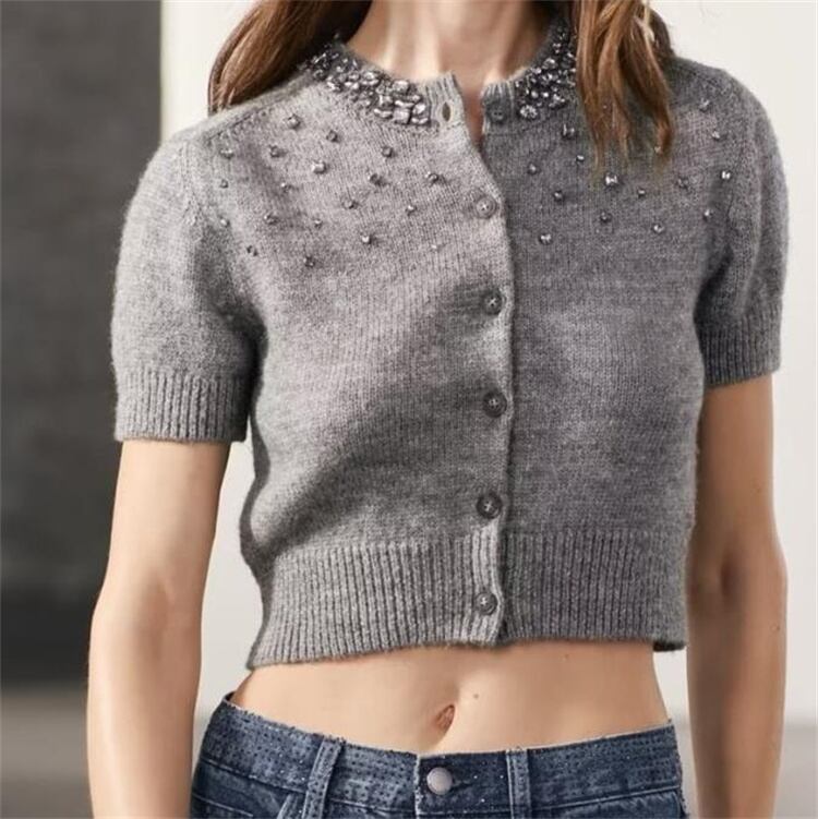 当店のおすすめ 新作 半袖 エレガント ギャザリング トレンド ニットトップス 短いスタイル 上着