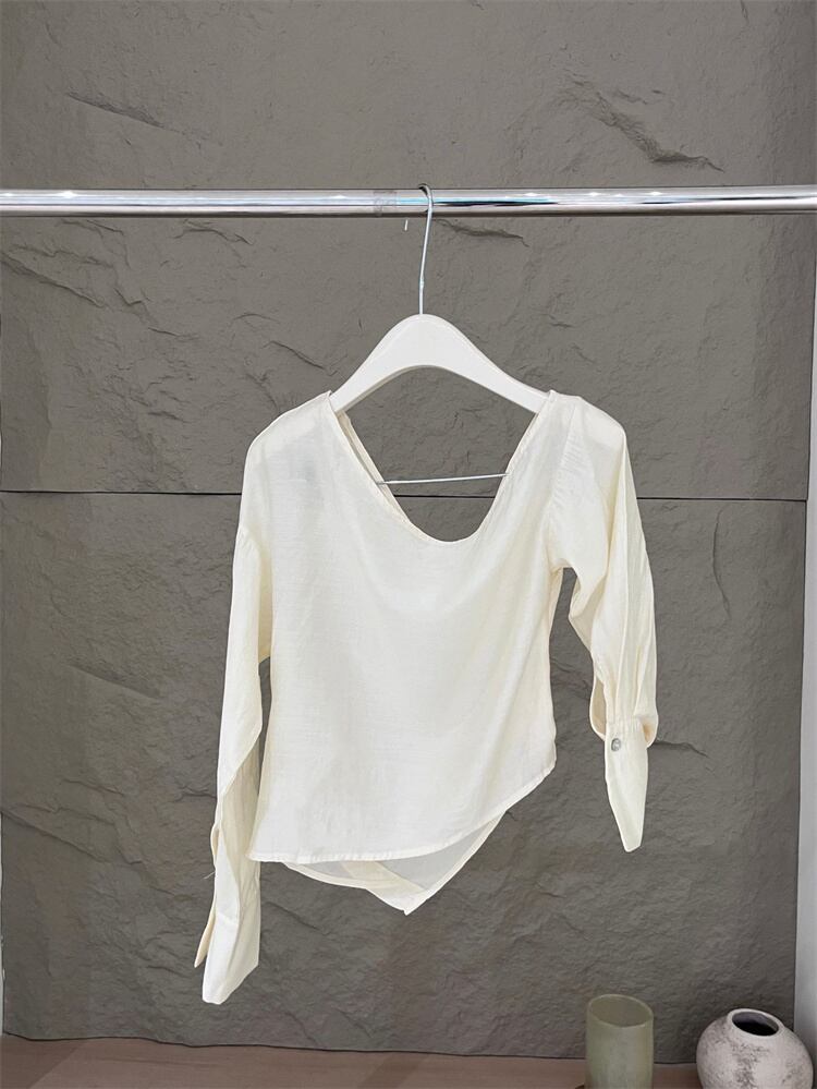 気質を改善する 斜め肩の服 シャツ ブラウス お出かけ 2023秋 一言の肩 ゆったりする 半袖 sweet系