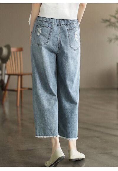 デニムパンツ ストレートパンツ レディース 9分丈 ジーパン ゆったり ワイドパンツ 刺? 美脚 デニムパンツ 柔らか バギー ボトムス チノパン 大きいサイズ 春秋 カジュアル ウエストゴム 体型カ
