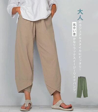 パンツ レディース ロングパンツ ワイド 無地 薄手 9分丈 ロング 綿麻風 ガウチョ ズボン ボトムス 大きいサイズ 体型カバー ゆったり カジュアル ナチュラル 可愛い オシャレ ブラック 夏