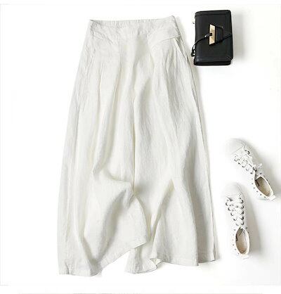 ワイドパンツ 夏 ロングパンツ レディース パンツ ワイド 無地 ロング 綿混 ガウチョ ウエストゴム ズボン 九分丈 大きいサイズ 体型カバー ゆったり カジュアル きれいめ 薄手 着痩せ ゆる ナ
