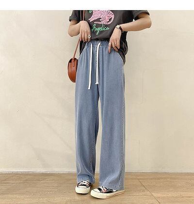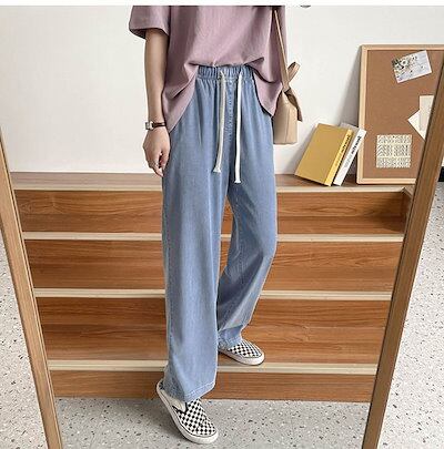 デニムパンツ レディース 薄手 デニムパンツ 夏 大きいサイズ 接触冷感 デニム ワイドパンツ 涼しい ボトムス ロングパンツ ロングデニムパンツ リラックスパンツ ゆったり 体型カバー 大人 楽ち