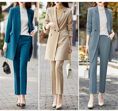 セットアップ スーツ レディース パンツスーツ フォーマル セレモニー ビジネススーツ 洗える 大きいサイズ テーラードジャケット&ワイドパンツ 2点セット 入学式 卒業式 入園式 卒園式 通勤 オフ