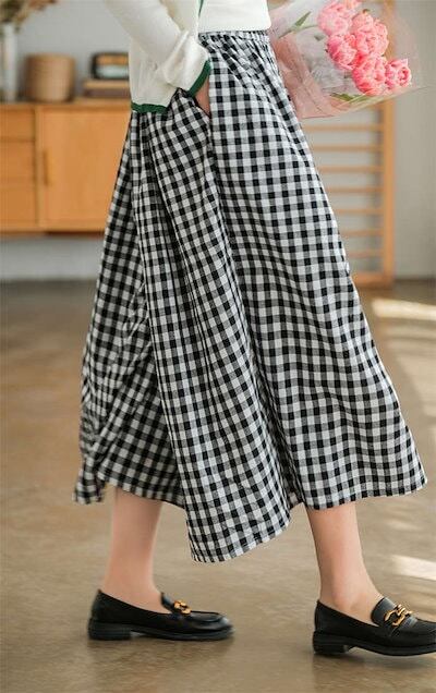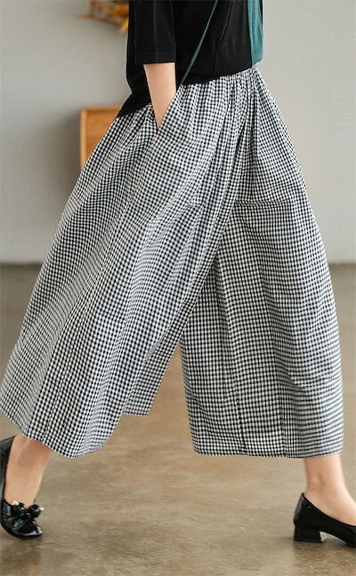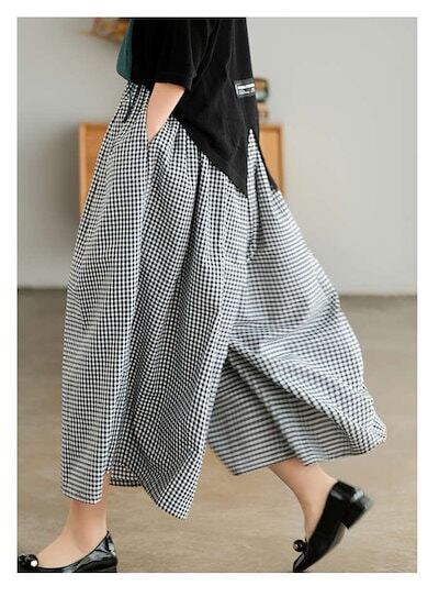 ワイドパンツ レディース チェック柄 綿麻 ン スカンツ ロング丈 体型カバー おしゃれ ゆったり カジュアル ナチュラル 着痩せ ボトムス 物 ゆる 大きいサイズ 薄手