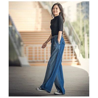 ワイドパンツ デニム レディース ガウチョパンツ ワイドデニム デニムパンツ 体型カバー ジーンズ ハイウェストデニム ロングパンツ 大きいサイズロング丈 華奢見え おしゃれ ゆったり カジュアル