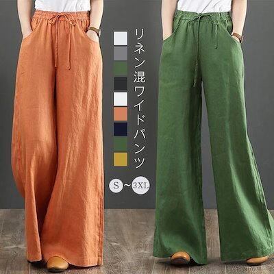 ワイドパンツ レディース ロング丈 綿麻 ン スカンツ ガウチョパンツ 体型カバー おしゃれ ゆったり ナチュラル カジュアル 着痩せ ボトムス 無地 ゆる 大きいサイズ ワイドシルエットフレア