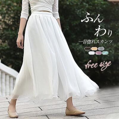 ワイドパンツ スカンツ シフォン リラックスパンツ フレアパンツ ガウチョ スカーチョ パンツ レディース きれいめ 可愛い 大きいサイズ 体型カバー おしゃれ ゆったり カジュアル ナチュラル 着痩